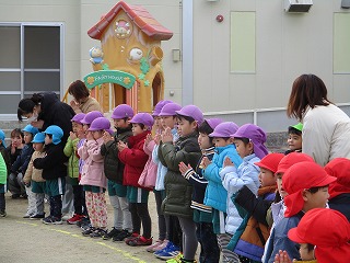 第3学期の始業式がありました。園長先生から、『今年は何年でしょうか』の問いに多くの子が、『うま年』とこたえていました。そのあと、十二支のお話を教えてもらいましたよ。猫がネズミを追いかけるのは、この時からとか・・・・最後までお話を聞けていた子どもたちでした。 始業式後に、2~5歳組ごとに集合写真を撮りました。2,3歳組さんは、並んで撮影が上手にできる