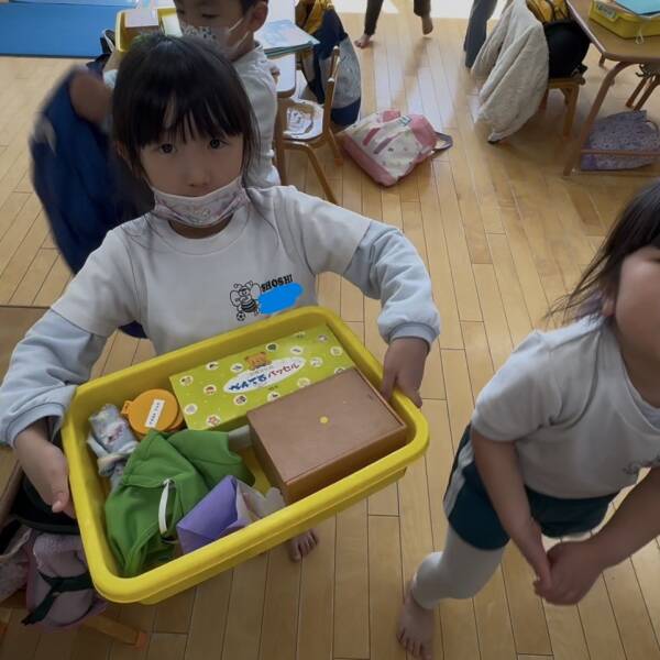 今月に保育園を卒園するさくら組と幼稚園を卒園するお友達と一緒に『おたのしみ会』がありました。ホールからにぎやかな声が聞こえてきましたよ。 【先生と子どもたちで対決! 玉入れ 】大好きな先生の写真のカゴにみんな元気に玉を投げこんでいましたよ。遠くまで飛ばせていました。 【ゲストたちによるサプライズダンスなど】お泊り保育の時も盛り上げてくれたゲストが登