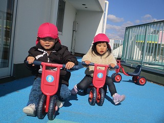 日差しはぽかぽかしますが、秋の風は、だんだんと冷たく感じるようになりましたね。たんぽぽ組のお友達は、園庭遊びのグループとテラス遊びのグループに分かれて、戸外遊びを楽しみました。今日は、テラスで遊んだおともだちの様子をお知らせしますね。 テラスでは、シャボン玉をキャッチしようとかわいいおいかけっこをしていましたよ(*^-^*) シャボン玉を追いかけご
