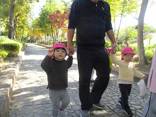 園の隣の遊歩道には、どんぐりや赤い実の木々が勢ぞろいです。この時期は、お散歩しながらどんぐり拾いができます。かわいいドングリを見つけて、子どもたちは大喜びです。枚数が多いですが、ぜひご覧ください。 たくさん拾えてニコニコ笑顔が見られて、良かったです(^.^) 今日の給食は、味噌煮込みうどん、肉団子、デザートは柿です。味噌煮込みうどんは、新メニューで