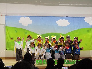 ひまわり組のお友達全員で、オペレッタ『まほうよりもすごいもの』を発表しました。 ホールには、たくさんのお客様がおいでになりました。 保育室では、お手伝いの保護者の方が、衣装の着替えを手伝ってくださいました。おかげさまで、ゆとりをもって準備を進めることができました。ありがとうございました。 お部屋で、みんな一緒に『がんばるぞー』と、意欲たっぷり😊では