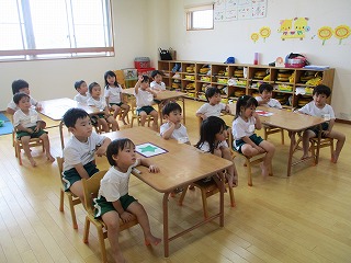毎月、避難訓練(火災、地震、水害、引き渡し等)と安全指導(交通ルール、不審者、遊びの約束など)の訓練を実施しています。今日は、不審者対応訓練をしました。 警察官の方が指導者となり、子どもたちの避難状況、職員の対応を見てくださいました。 園庭で遊んでいる時間に、不審な人物が園に入ってきました。保護者の方ではないことを確認し、園内に入らないよう対応しま