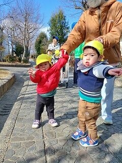 今日は、日差しが春の訪れを感じる日です。つぼみ組のお友達は、あったかくしてお散歩にお出かけしました。園長先生も一緒にお出かけですよ。 あんよが上手なお友達は、先生の手を引っ張りどんどん進みます。成長に合わせて、お散歩ワゴンが変わります。お散歩が楽しめる春までは、もう少し。 桜が咲いたら、もっときれいな風景が楽しめますね。 さて今日の給食は、3月で卒