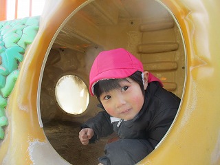 今日は、ぽかぽかいい天気です。寒くてお外遊びがお休みだった1歳クラスのたんぽぽ組のお友達が元気に、園庭遊びを楽しんでいます。いろんな遊具に遊んでいましたが、一部分をお知らせしますね。 かけっこが早くて、撮影者は追いつかないお友達も・・・成長を感じました。暖かい日は、お外で体を動かして遊ぼうね。 今日の給食は、ごはん、サーモンマヨ焼き、キャベツのゆか