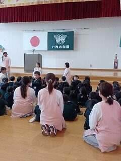 今日は、同じ敷地内にある幼稚園のお友達も春休みが終わり、登園して、第一保育期がスタートです。3歳、4歳、5歳クラスは、ホールで始業式に参加しましたよ。