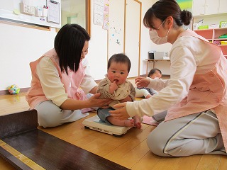 つぼみ組のお友達は、入園したばかり。慣らし保育中の赤ちゃん達です(^^♪