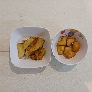 おやつは、フライドポテトです。小さい組のお友達は、ハート型でかわいいね(^.^)