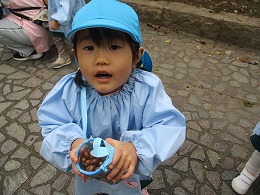 お散歩バックいっぱいに、どんぐりを集めていました😄