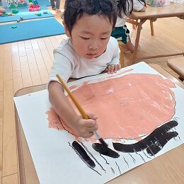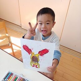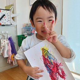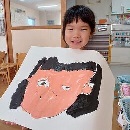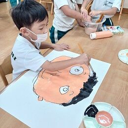 ひまわり組のお友達は、自分の顔の絵を上手に絵の具を使って描いていました🎨