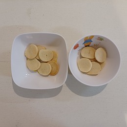 おやつは、クッキー(卵乳不使用のさくほろクッキー)・麦茶です。