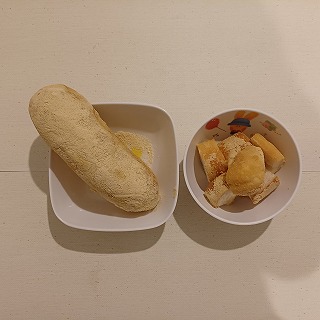おやつは、揚げパンです。ボリュームたっぷりでおいしそう!いっぱい食べてね。