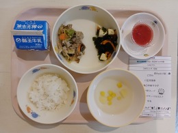 本日のお給食は、ごはん、八宝菜風煮、豆腐の中華サラダ、お誕生日デザート(いちごみるくムース)、牛乳です。新メニューで栄養たっぷり中華のメニューということでしたが、さすが保育園のお友達は、パクパクモリモリ食べる、元気なお友達が多くいました。