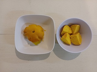 おやつは、かぼちゃスコーンです。かぼちゃを使って、ハロウィン仕様ですね。