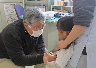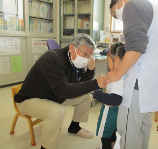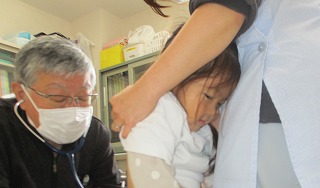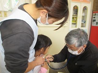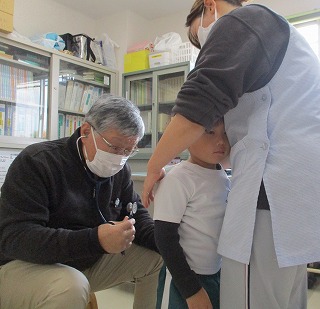 おなかと背中に聴診器を当てて健診は終了です。次のお友達のために、静かに移動します。