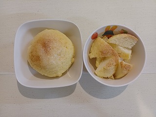 おやつは、みんながダイスキ 特製メロンパンです。「おいしい」を、たくさんいただきました