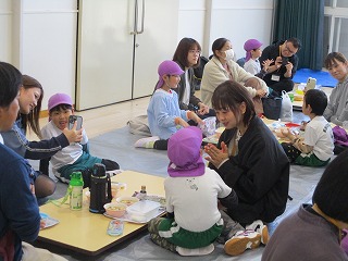 とてもいい天気のもと、さくら組の親子活動のもちつき大会が行われました。手伝いの役員の皆様のご協力のおかげで、スムーズに運営できました。ありがとうございました。