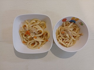 おやつは、焼うどんです。いっぱい食べて、大きくなってね。