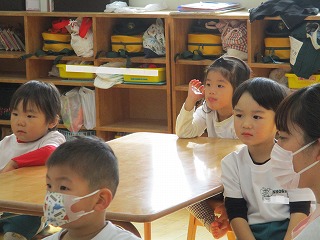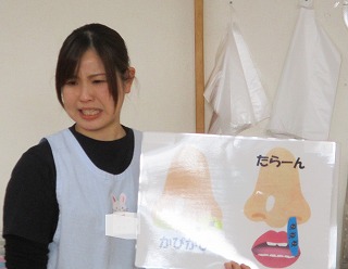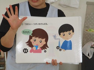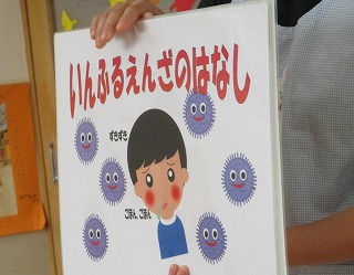 インフルエンザ罹患の報道を聞くようになりましたね。今日は、あやめ組のお友達に看護師の資格がある養護教諭の先生から、インフルエンザ予防のお話がありました。とっても大事なことなので、皆さんにもお知らせしますね。ご家庭でも感染予防に努めてくださいね(^.^)