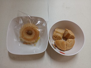 おやつは、特製きなこドーナツです。きなこは、タンパク質やカルシウムが豊富ですよね。おいしく食べてくれるといいなぁ。