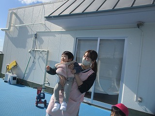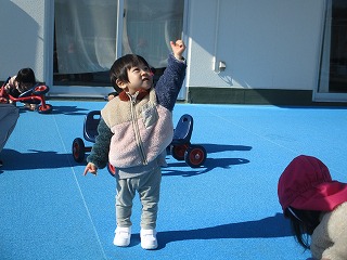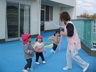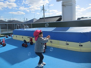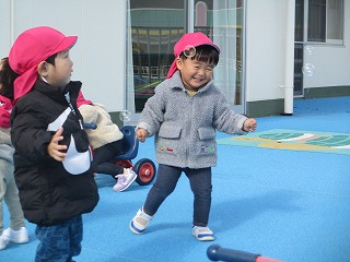 テラスでは、シャボン玉をキャッチしようとかわいいおいかけっこをしていましたよ(*^-^*)
