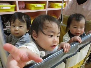 姉妹園のお子さんが、給食室(しょうちゃんキッチン)の見学に来ました。とてもお行儀がよく、ご挨拶も上手でした。見学終了後、かわいいつぼみ組のお友達をご紹介しました。『保育園には、かわいい赤ちゃんがいますよ。みんなも赤ちゃんだったんだよ。』