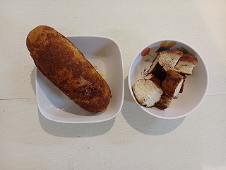 おやつは、揚げパンです。今日は、ココアパウダーがたっぷりですね。いっぱい食べてね(*^-^*)