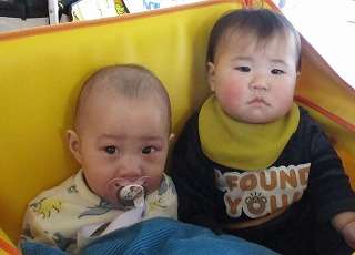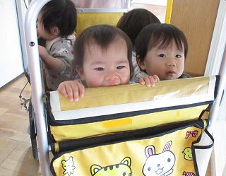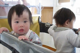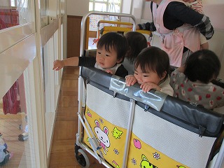 気分転換にはちょうどよいお散歩です。お散歩のあとは、給食の時間ですよ。