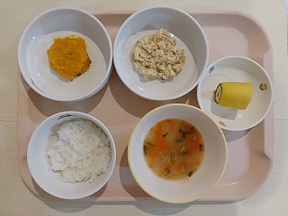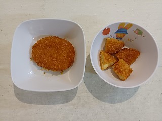 おやつは、サクサクコロッケです。いっぱい食べて、冬の寒さに負けない体をつくりましょう!