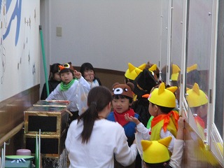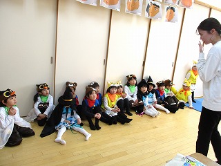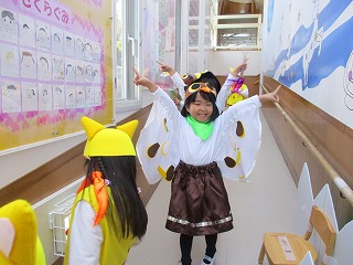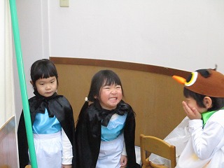 保育室では、お手伝いの保護者の方が、衣装の着替えを手伝ってくださいました。おかげさまで、ゆとりをもって準備を進めることができました。ありがとうございました。