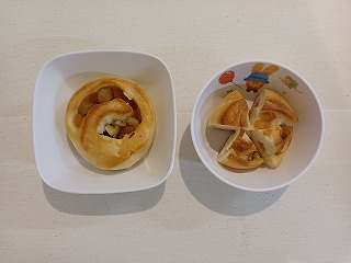 おやつは、特製おさつりんごパンです。おいも&りんごのおいしいパンを召し上がれ(*^-^*)