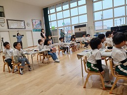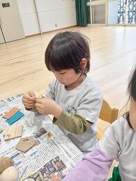 今日は、ひまわり組とさくら組のお友達が木育講座を行いました!!