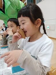 木は生きていて年齢があることや様々な木があること、実際に木を見せてもらったり、臭いを嗅いだり、紙芝居を見たりして教えてもらいました(*^-^*)