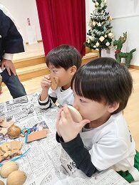 12/24の給食とおやつ、かぷたねっと作りを行いました♫(ひまわり組・さくら組)