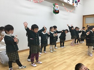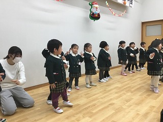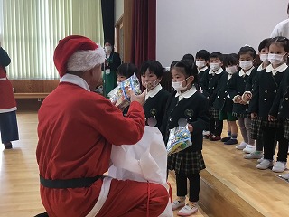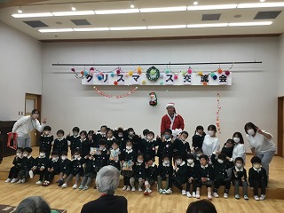 肩たたきをしてあげたり、わらべ歌遊びをしました。最後には、サンタクロースからお土産までちょうだいしました。楽しかったね。