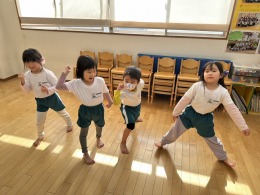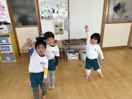 また、今日は4歳児さん、しっぽとりゲームを行いました。始まる前から気合十分!みんな必死に走り回っていましたよ。ルールのある遊びを理解しながら、競争心も持って、頼もしい姿でした。