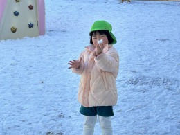 昨日は、雪が園庭にあり、大喜びのお友達。「つめたーい」「さむーい」と言いながらも、元気いっぱいのお友達でしたよ。