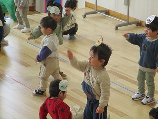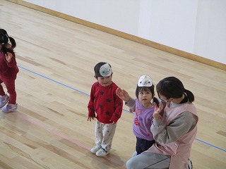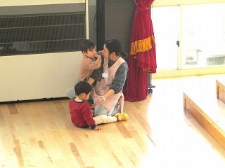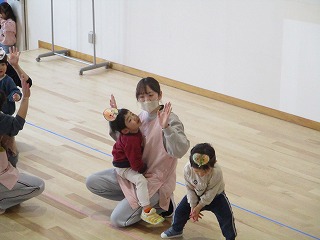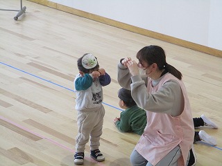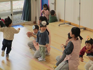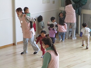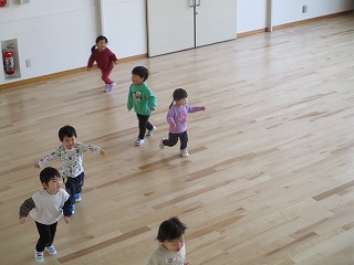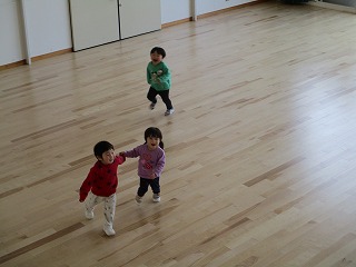 練習のあとは、たんぽぽ組のお友達にとってホールは、元気に遊ぶところ!みんなでかけっこをして楽しみましたよ。
