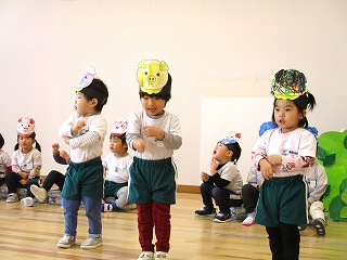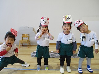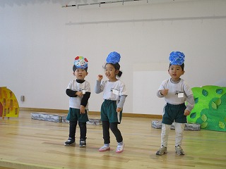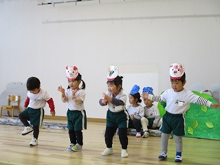 とってもニコニコで、三匹のこぶたのお話の流れに合わせて、振り付けをしていましたよ(^^♪