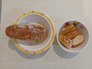 おやつは、揚げパンです。こちらもおいしそう(*’▽’) たのしみですね!