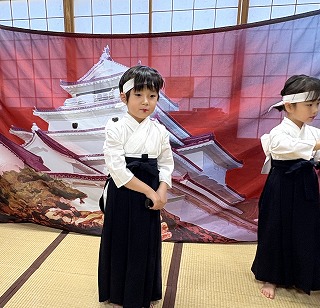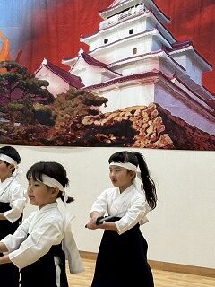 先週にお知らせしましたが、先日地域の皆様に、白虎隊の演舞を披露させていただきました。いつも練習していた場所と変わり、多くの方の前で発表することを心配している先生たちでした。公民館の和室で着替え等の準備がはじまり、少しずつ緊張してきたようです。