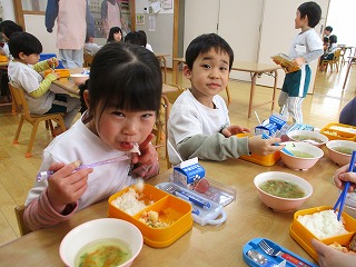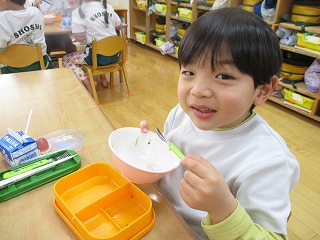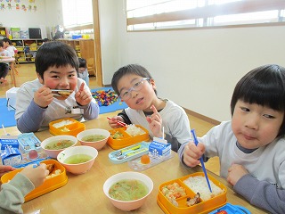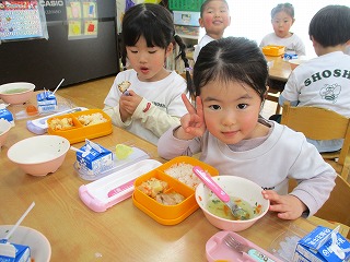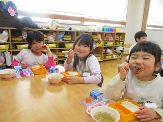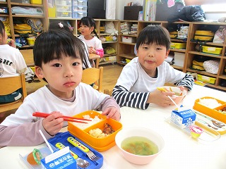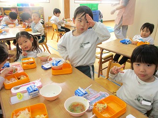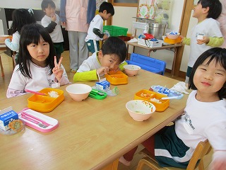 そんな仲良しの3クラスのおひるごはん(給食)の様子をお知らせしますね。