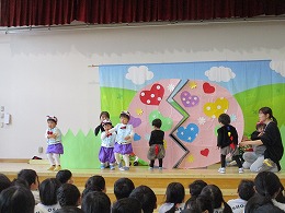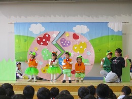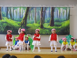 今日は、たんぽぽ組・ちゅうりっぷ組のお友達が衣装を着て、発表してくれました😊