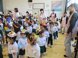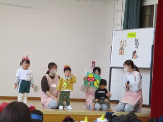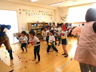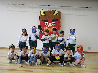 心の中の悪い鬼の退治が済んださくら組さんです。強い心になったお友達が力を合わせて鬼を退治しますよ。