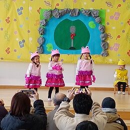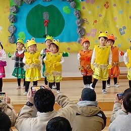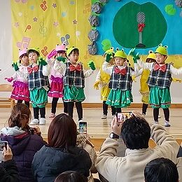 今日、あやめ組のお友達の発表会が行われ、「かえるの のどじまん」を発表しました!!