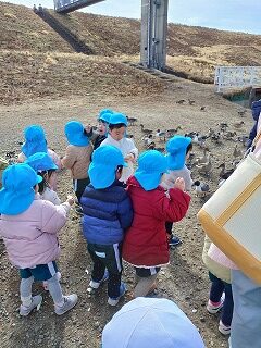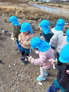 ちゅうりっぷ組のお友達が、バスに乗ってお出かけです。阿武隈川に飛来している白鳥の見学です。冬季しかみれない白鳥ってどんな鳥さんかな、みんな楽しみにしていましたよ。