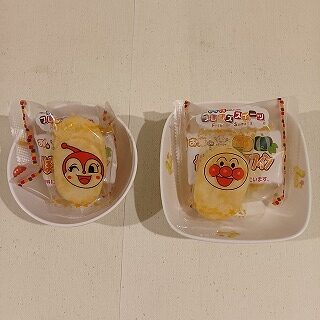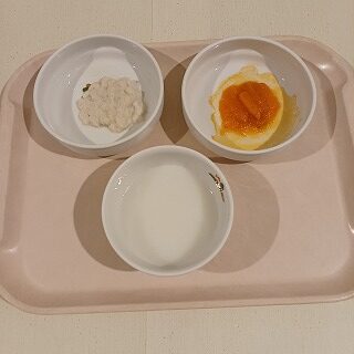おやつは、かぼちゃのマフィン、せんべいです。お昼寝の後のおたのしみ🎵ですね