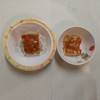 おやつは、特製さつまいもケーキです。甘いお芋が入っておいしそうですね(#^.^#)