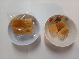 おやつは、リンゴケーキです。みんな、おいしく食べてね。