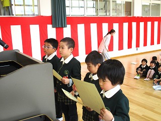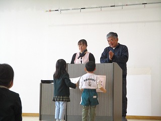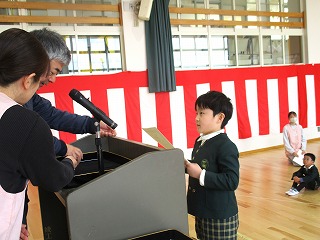 先日、各表彰式を行いました。皆勤賞等や絵画コンクールの受賞者に表彰状を園長先生からいただきました。