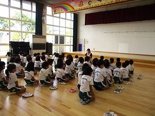 本園の保育目標は3つ 「おぎょうぎのよい子」、「しんせつな子」、「がまんする子」です。 がまんする子というのは、目標に向かってあきらめずに取り組む心を育てるという意味が込められています。 3歳以上のお友達は、苦手なこと(活動)では、自分で決めた目標にむかって、まわりのお友達や先生、保護者の支えの中で、がんばる気持ちで取り組み心の成長につなげています